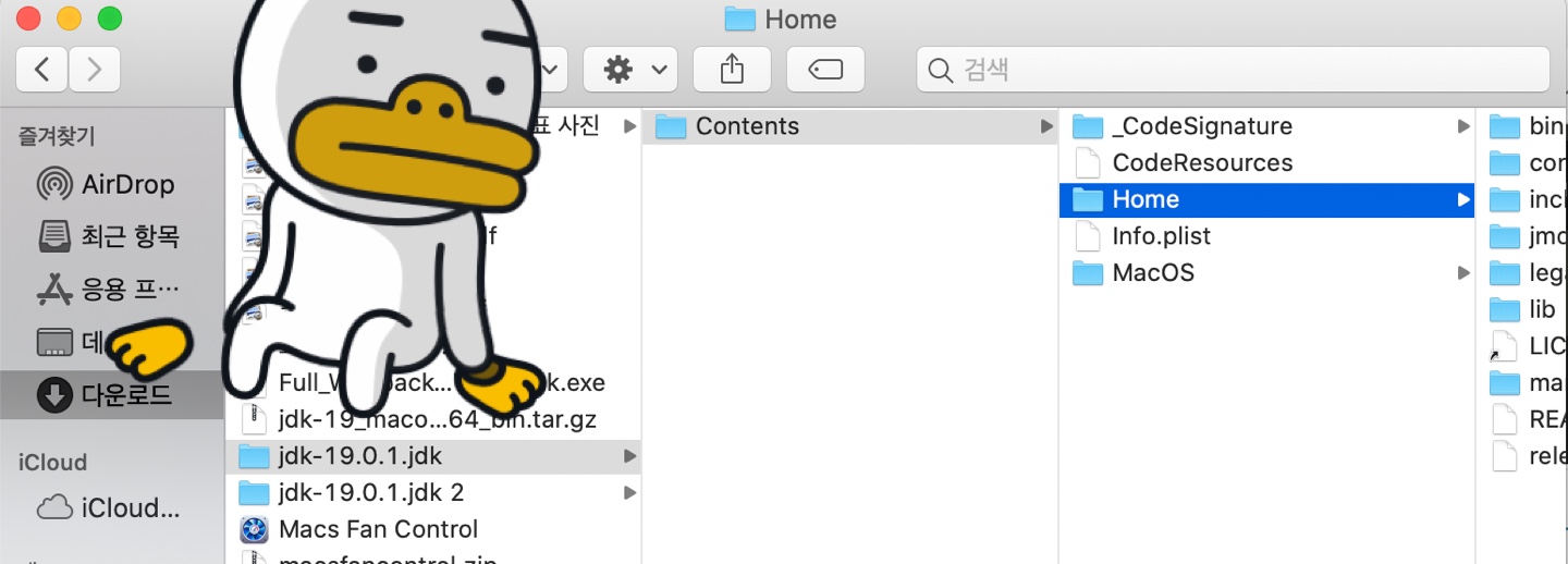 다운로드/jdk-19.0.1jdk/contents/Home/이 경로에 bin과 lib존재
