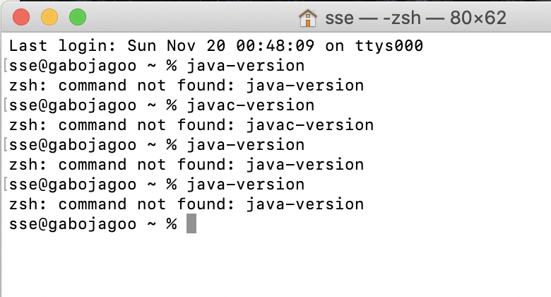 깔았다고 생각했는데 터미널에서는 java가 없음