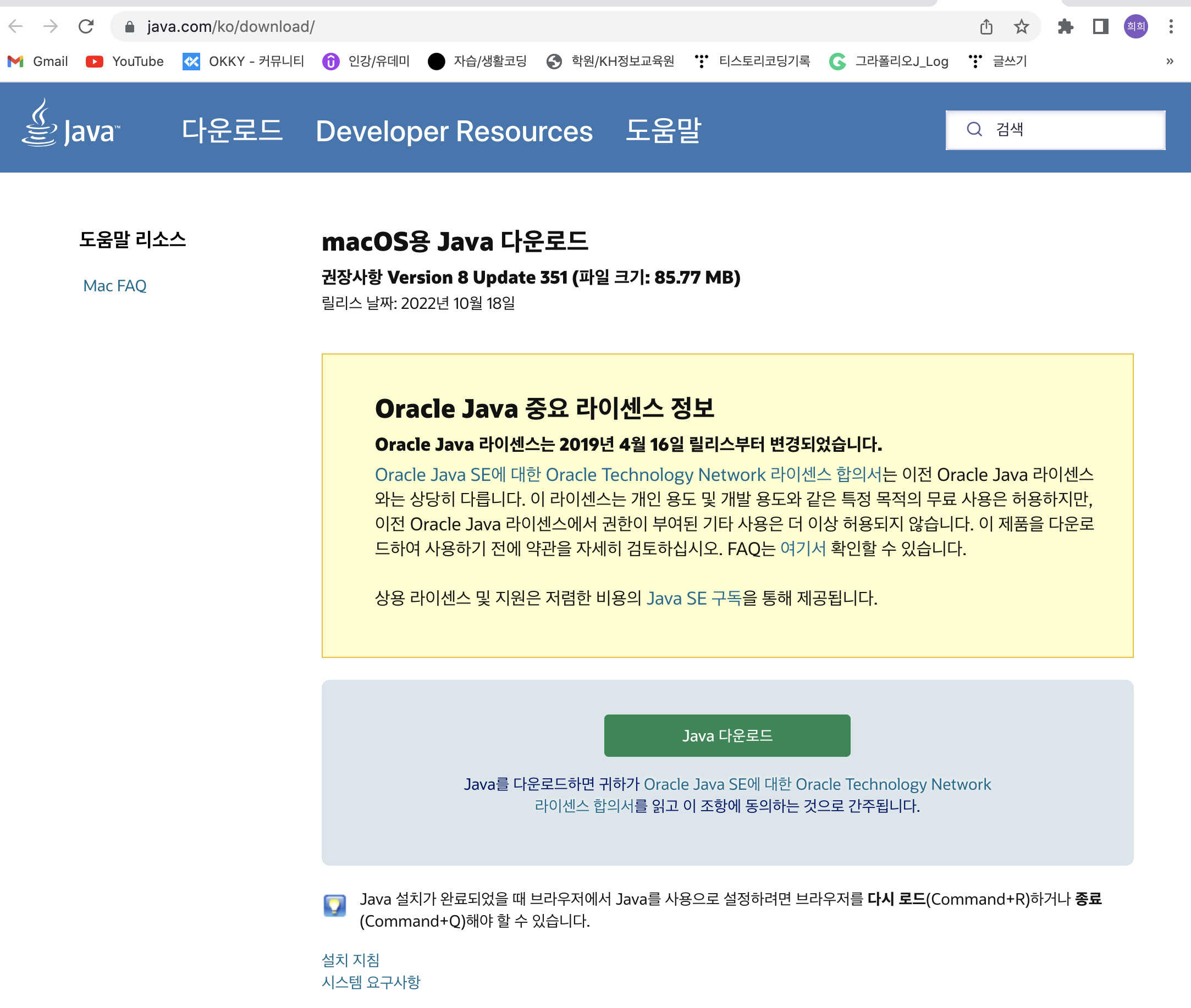 - 강의 영상 보면서 맥북용으로 선택해서 JDK, eclipse 설치