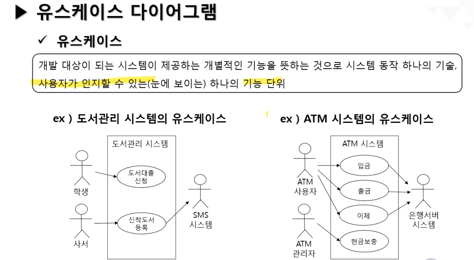 - 시스템 기능을 사용하는 사용자와 시스템간의 교류를 표현한 것