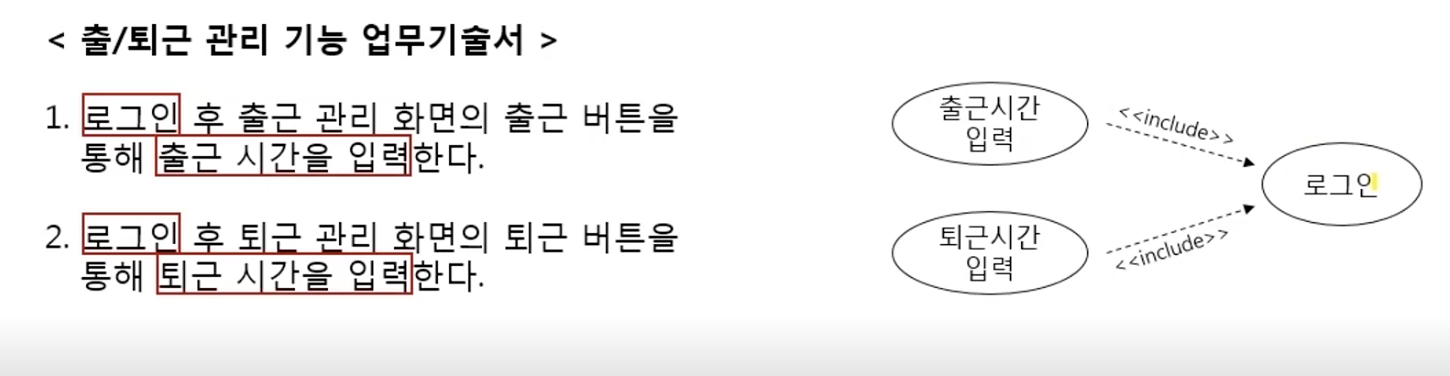 반드시 해야하는 것을 include 점선을 이용해서 표시해야한다.