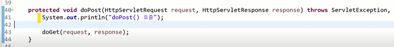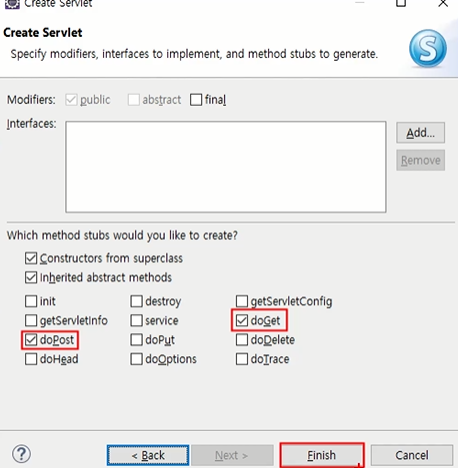 - 다음에 service() 메소드가 클라이언트 요청 방식에 따라 doGet() 또는 doPost() 메소드를 호출한다.