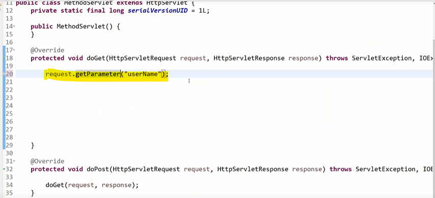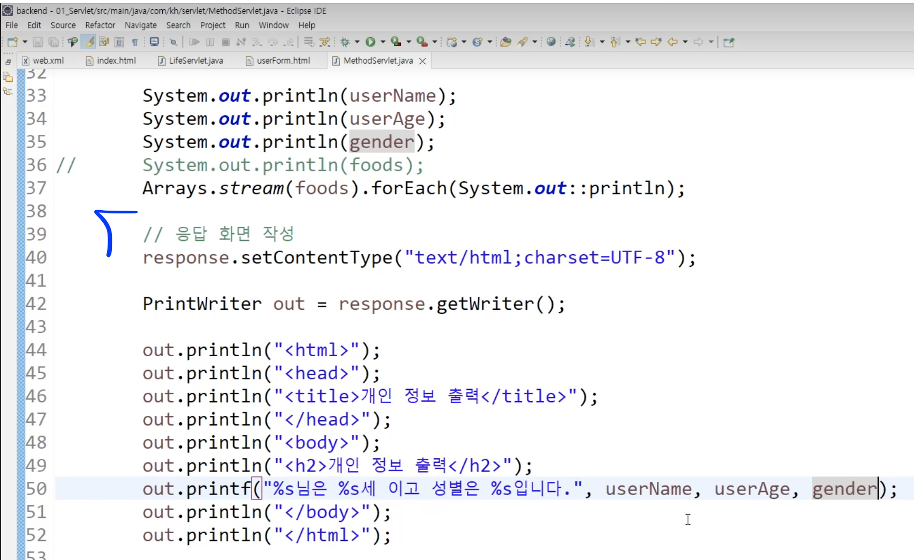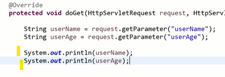 request.getParameter("userName")은 사용자가 보내주는 정보를 받아오는 메소드에 매개값으로 키값을 준 것이다.