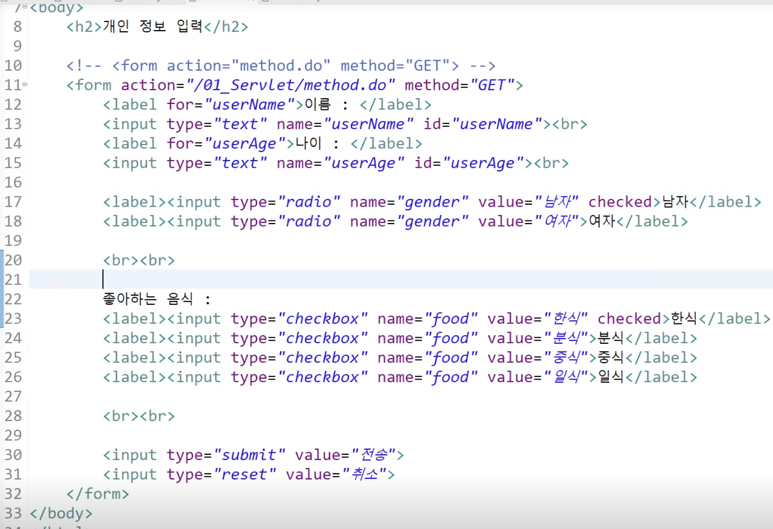 - request.getParameter("name 속성의 값") : 해당 name 속성의 값을 가지는 요소의 value값을 문자열로 읽어온다.