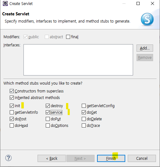 - 최종적으로 서블릿이 서비스되지 않았을 때 destroy() 메소드를 호출한다.