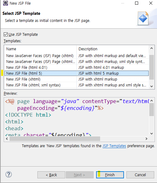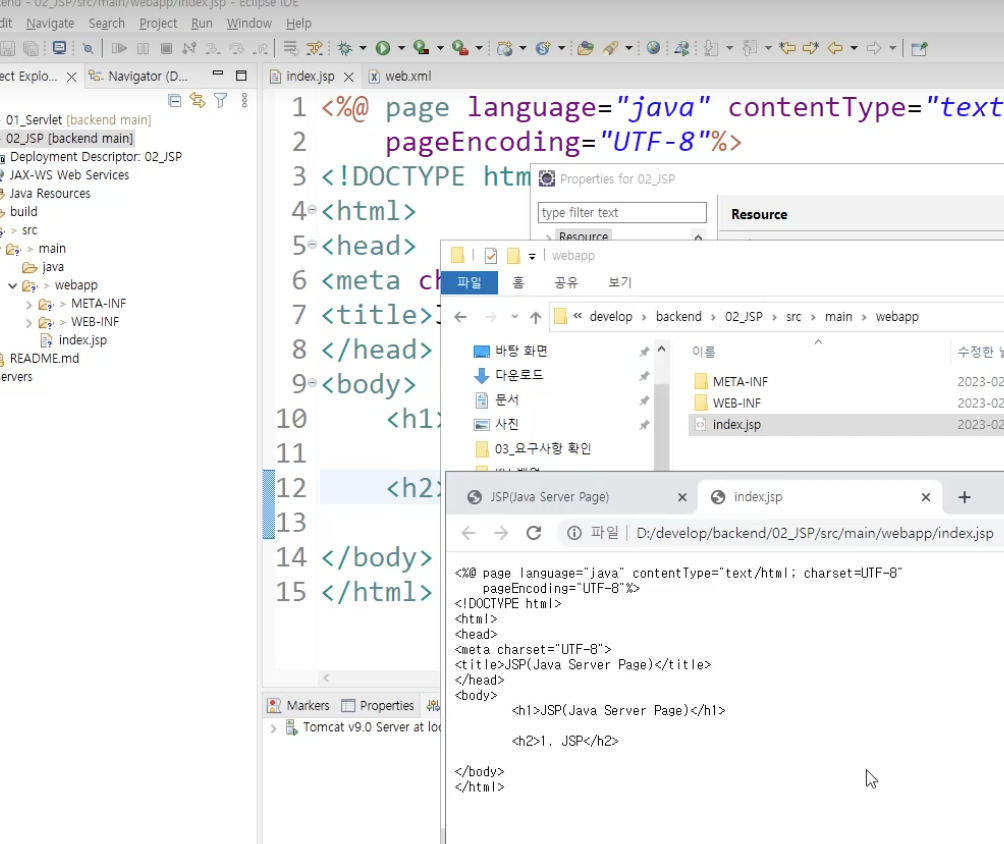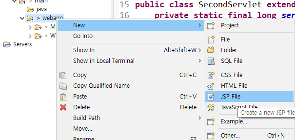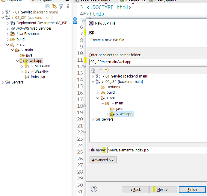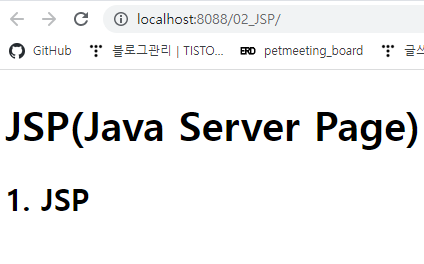 - JSP 파일의 배포 위치는 HTML 파일 만들듯이 webapp에 지정하는 것으로 동일하다.